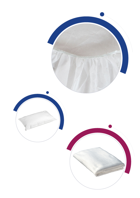 Kit copertura letto degenza, confortevole inodore ipoallergenico spunbond e monouso in tnt polipropilene colore bianco.